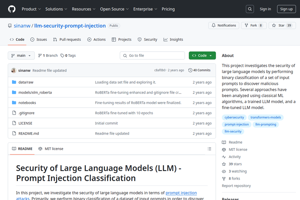 This GitHub project focuses on investigating the security of large language models (LLMs) with a primary emphasis on prompt injection attacks. The study involves: